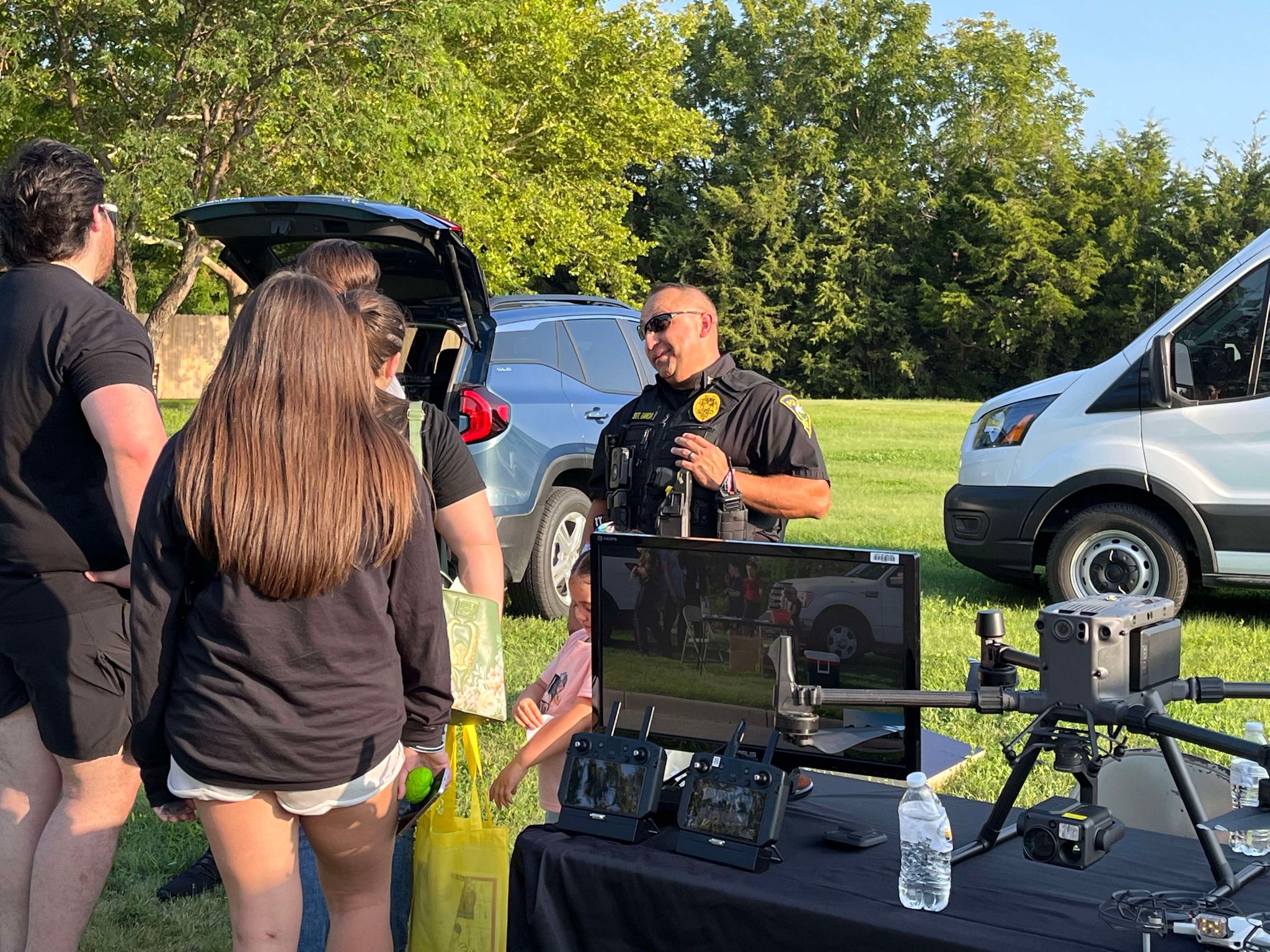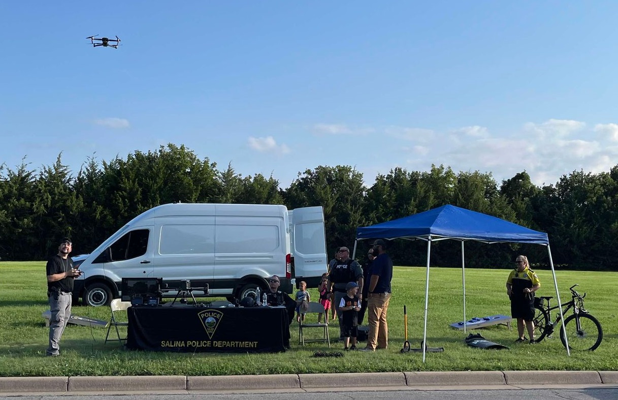 Loud horns and sirens occasionally blared, a drone soared overhead, and a remote control vehicle roamed the street as citizens gathered in Salina Tuesday evening in Jerry Ivey Park to participate in National Night Out.