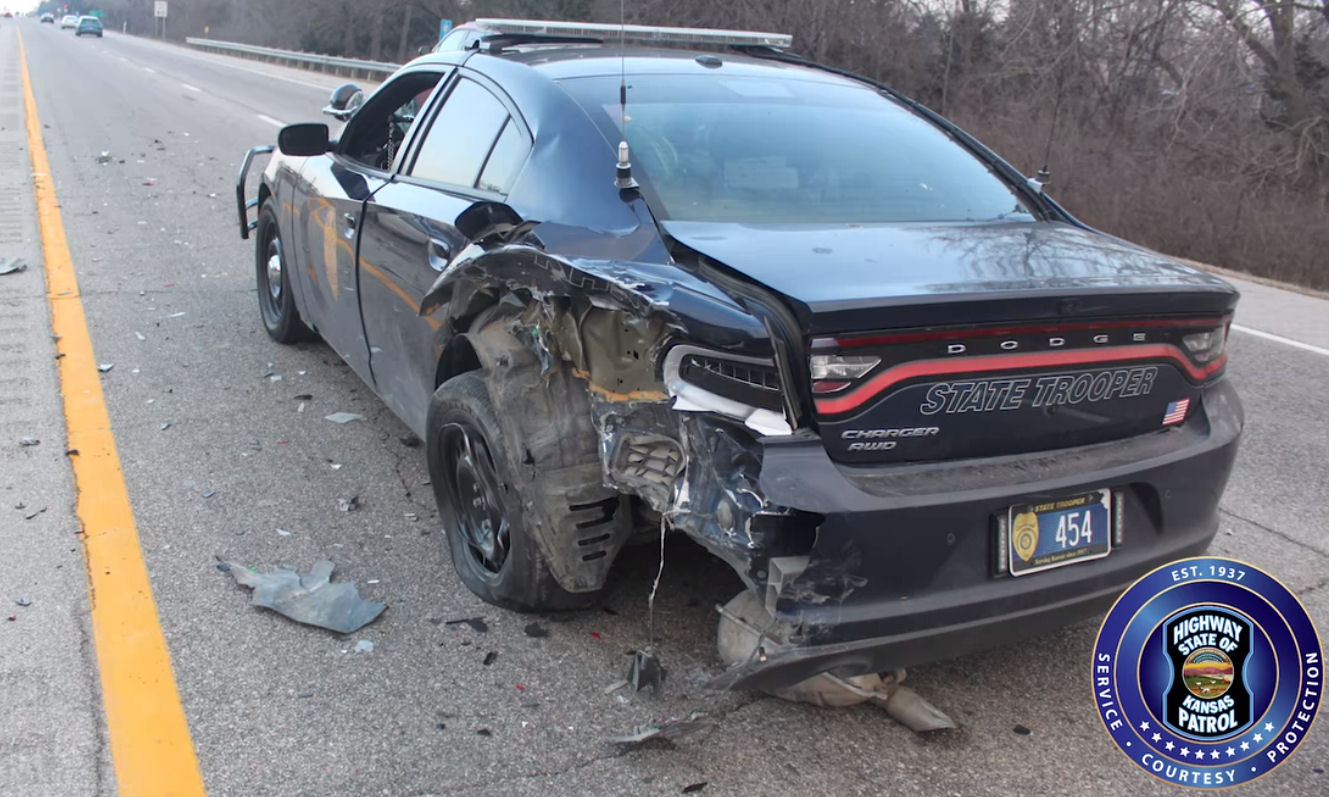 According to the Kansas Highway patrol, a trooper in Sedgwick County came to a stop in traffic, and a short time later was struck by a driver that was distracted. Thankfully, the trooper that was struck and the driver that struck him were not injured.