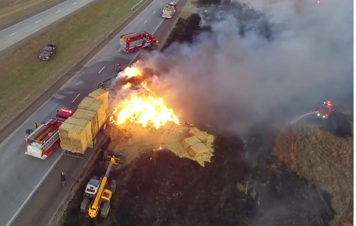 No one was hurt when a semi hauling a load of hay caught fire Wednesday evening along Interstate 70 near Salina.