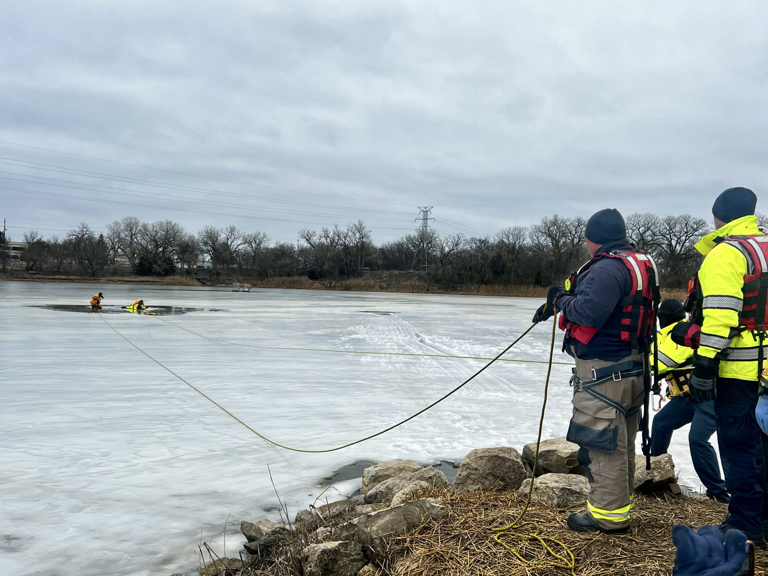 Salina/Saline County first responders conducted an Ice Rescue Operations training session at a frozen lake.