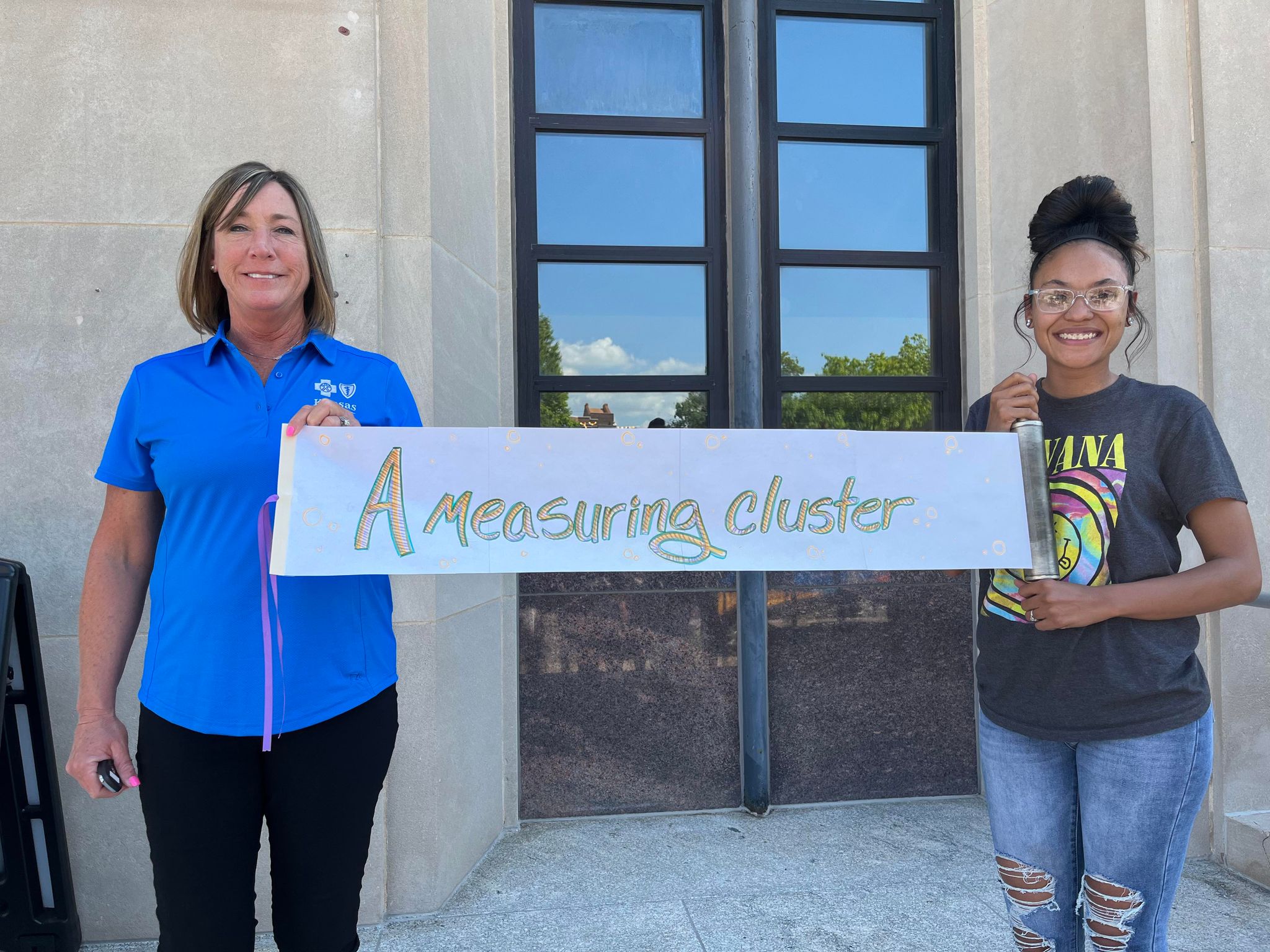 The first clue was unveiled Wednesday afternoon at 4:00 on the steps of the Smoky Hill Museum. It is: