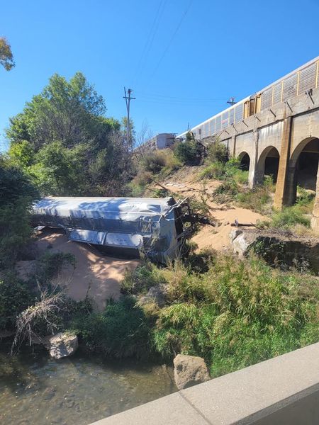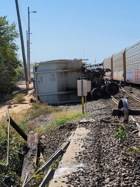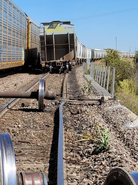According to Smith, five grain cars carrying wheat left the tracks. One went off a bridge at K-4 Highway and missed the highway by about 40 feet.
