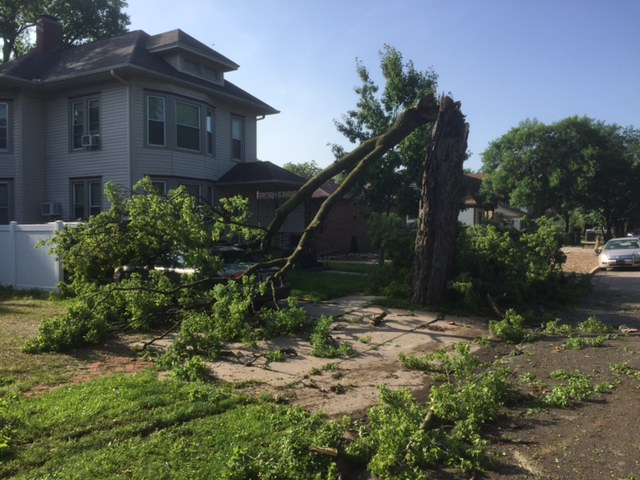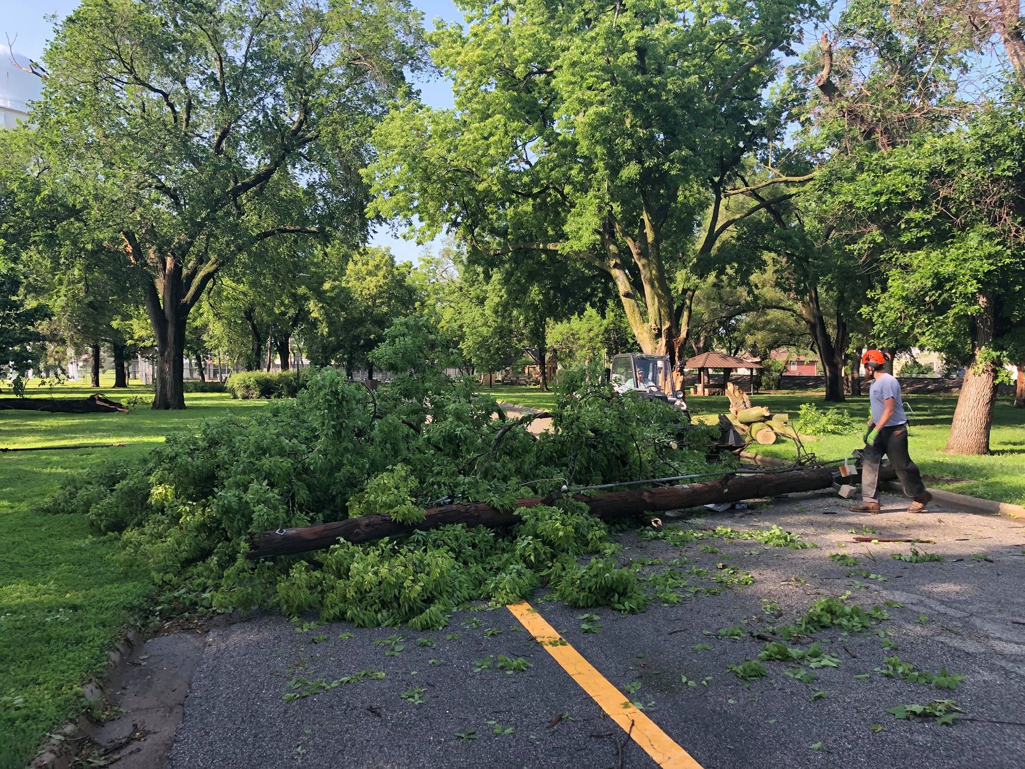 Sunset Park suffered significant damage. Several trees, power poles, and numerous limbs and branches were down. Crews arrived early to get the park cleaned up enough for Memorial Day ceremonies which were scheduled for later in the morning.