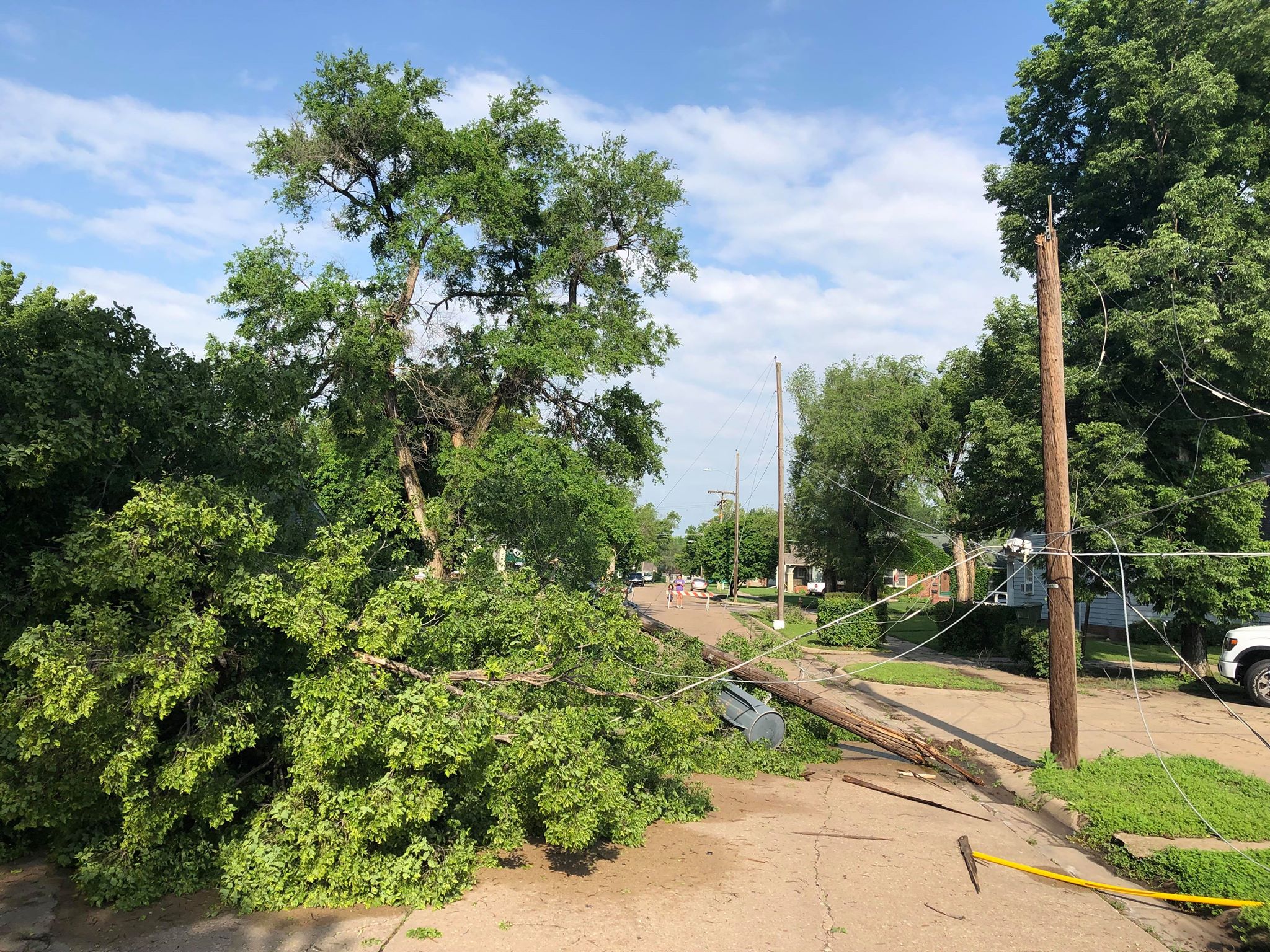 Brief but intense wind preceding a squall line of severe thunderstorms early Monday morning caused significant limb, tree, and utility pole damage across Salina.