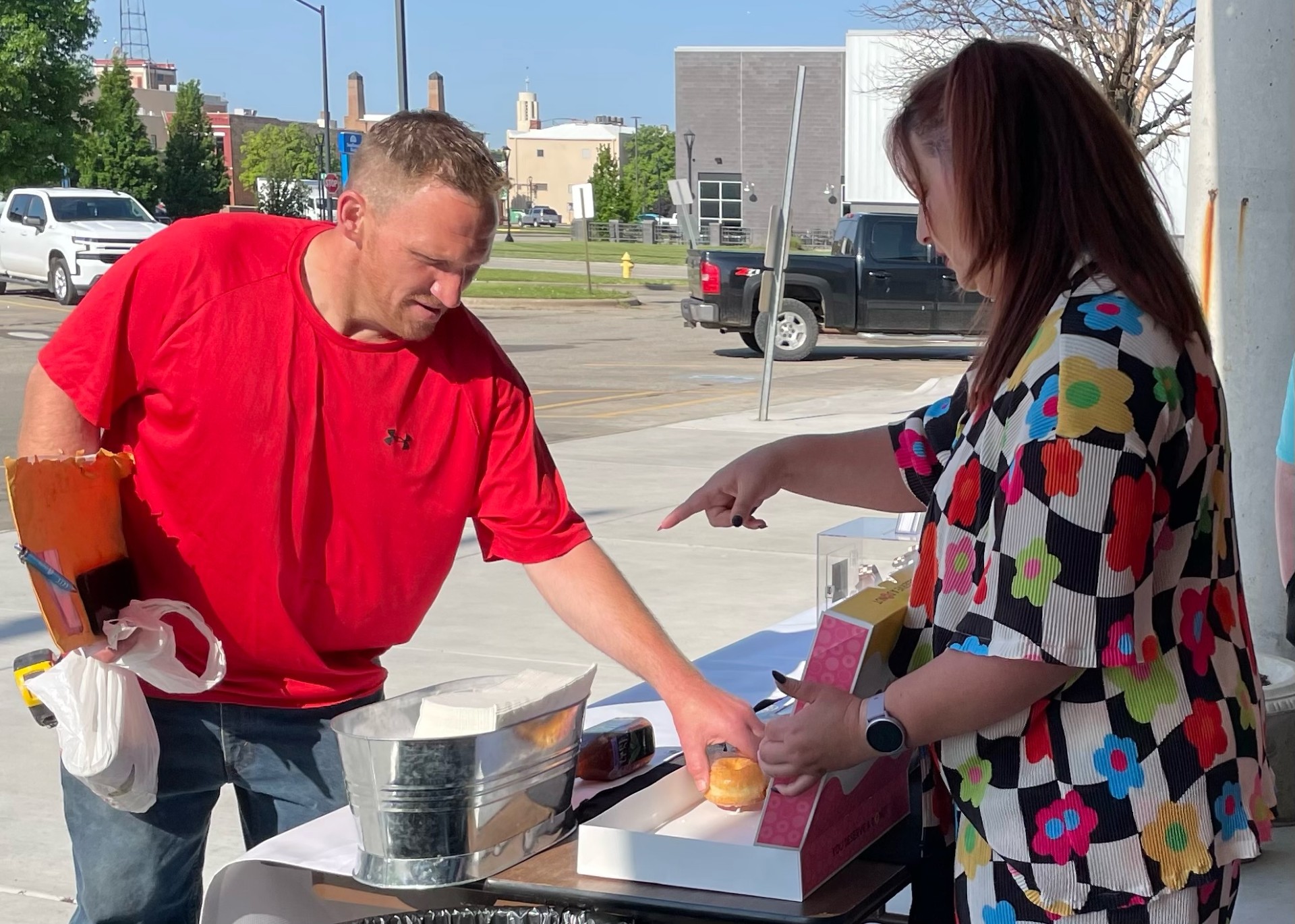 It was a party of sorts at the Salina Post Office on Friday – Meridian Media’s Hannah Holt was on hand to pass out donuts, hotdogs and the blue bags designed to hold food donations.