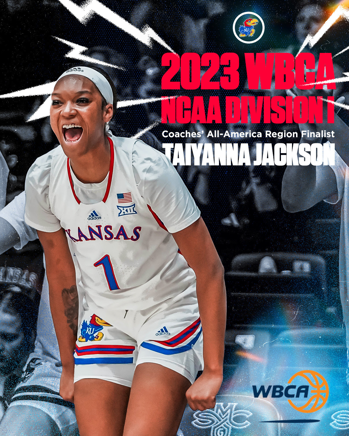 ATLANTA – The Women’s Basketball Coaches Association (WBCA) announced Wednesday the region finalists for 2023 WBCA NCAA Division I Coaches’ All-America, with Kansas senior center Taiyanna Jackson named as one of 10 finalists from region three.