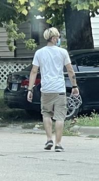 He fled on foot while she got into her car to follow him and snap a photo. He appears to have a tattoo on his right forearm.