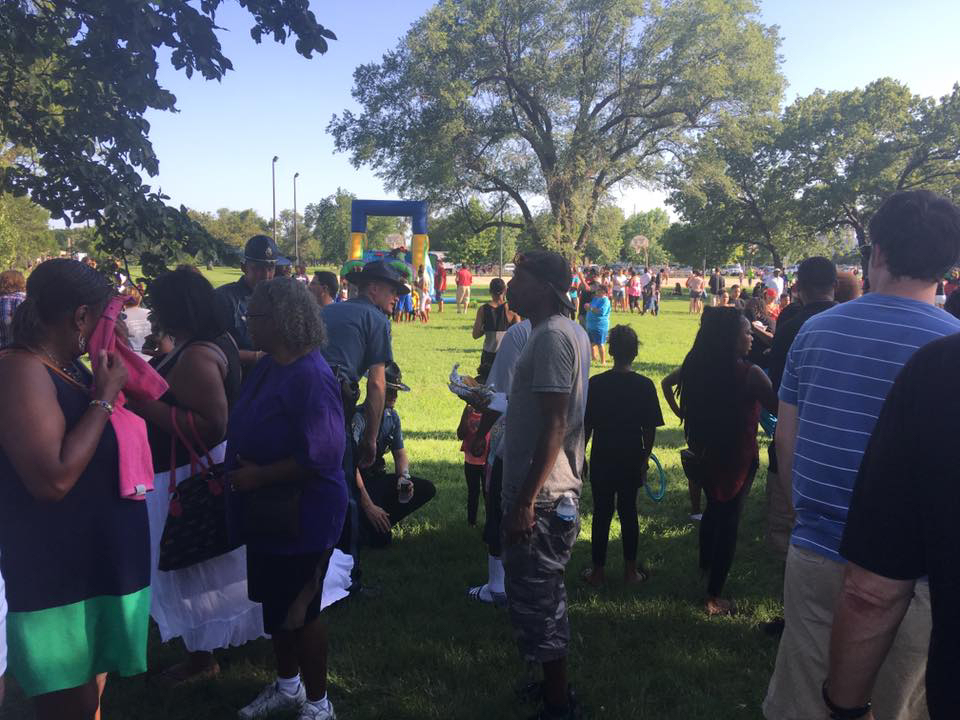 The goal was to open lines of communication and build trust between police and the communities they serve. The crowd at the barbecue included people who were white, black and Hispanic.