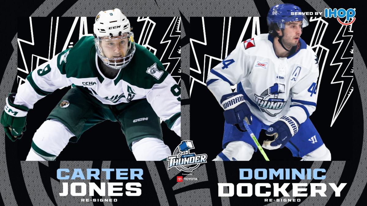 WICHITA, Kan. (July 22) – The Wichita Thunder, ECHL affiliate of the NHL’s San Jose Sharks, AHL’s San Jose Barracuda and powered by Toyota, announced today the re-signing of defenseman Dominic Dockery and signing of rookie forward Carter Jones for the 2024-25 season.