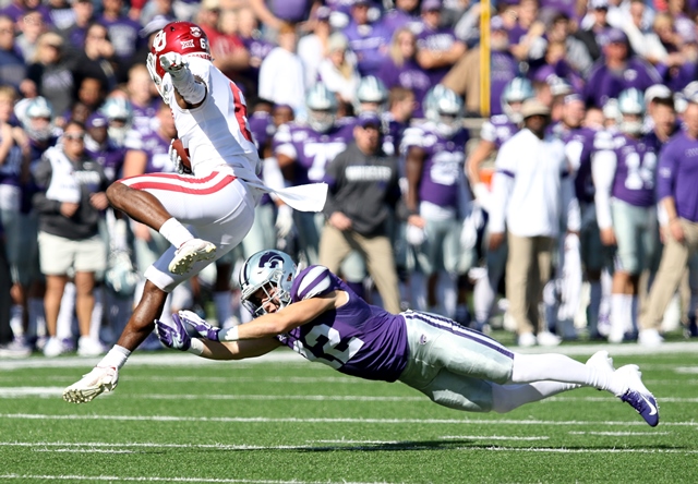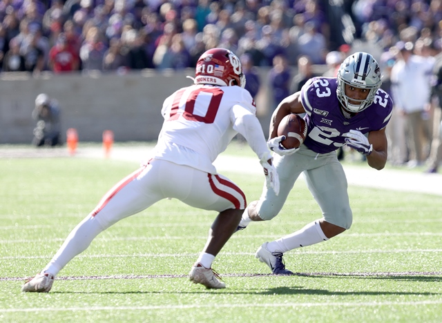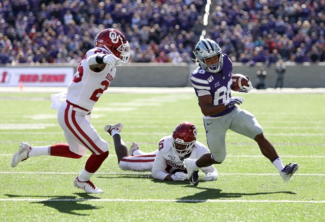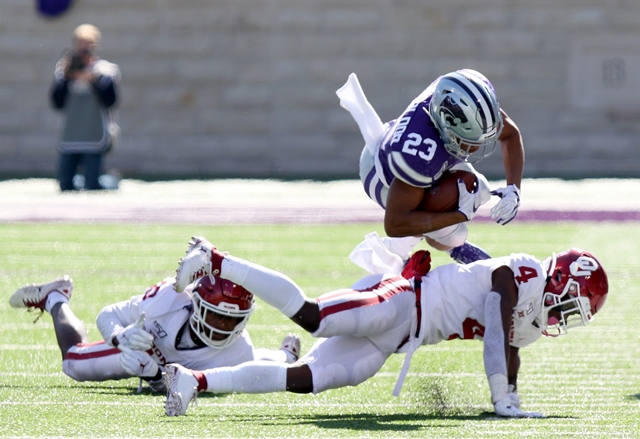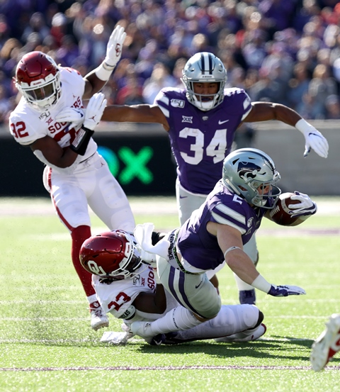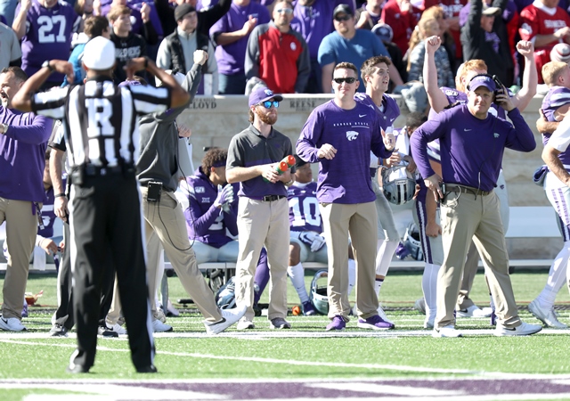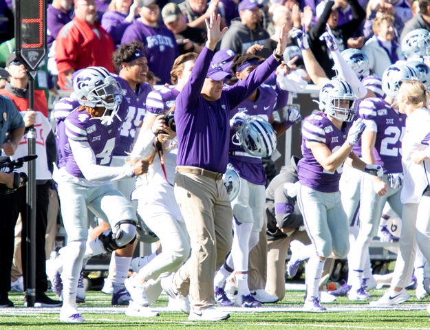 K-State’s win was sealed when an onside kick recovery by Oklahoma with less than two minutes left was overturned by replay review, prompting a loud roar in the stadium and putting K-State’s offense into the victory formation.