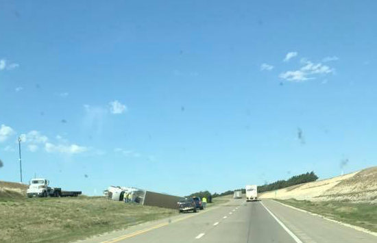 According to the Kansas Highway Patrol, high wind blew over a semi in Lincoln County, in the area of Milepost 229. The truck, which was pulling an empty box trailer, was headed east in the Lincoln hill area when it blew over into the median.