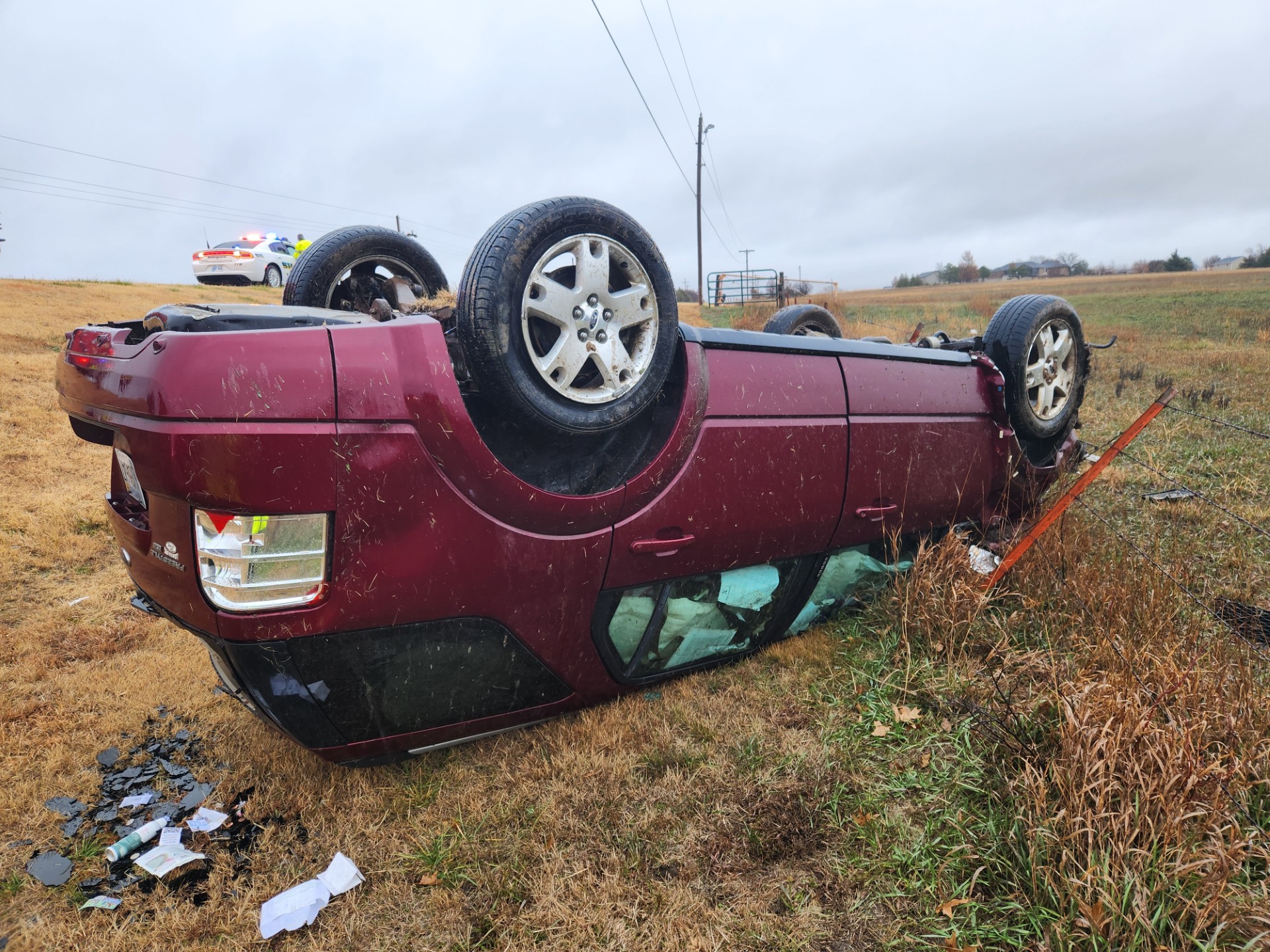 The vehicle crossed the road, hit a culvert and a fence before landing on its top.